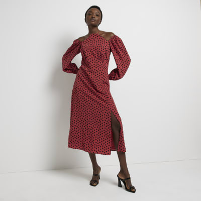 Rust Cut Out Long Sleeve Maxi Swing Dress River Island
